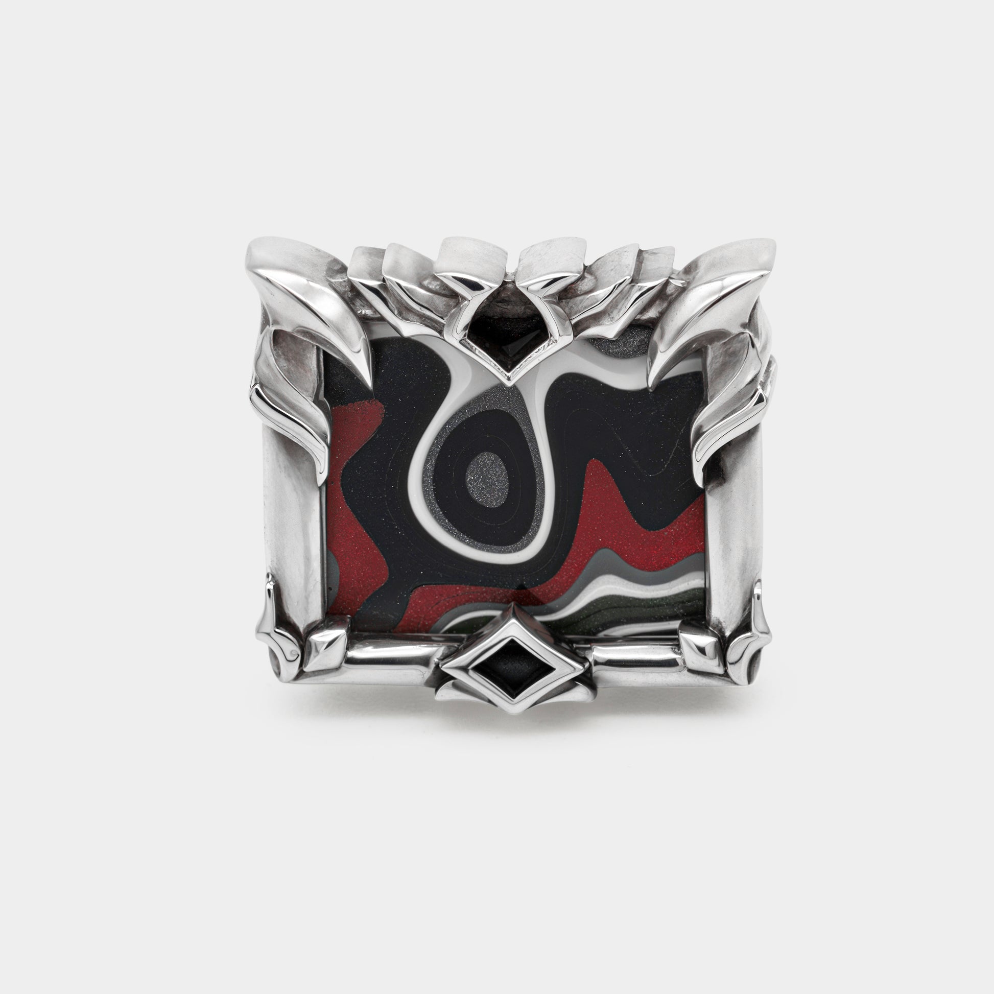 Square shape ring with insert made of dried automotive paint from Detroit, 1990s. Piece unique design