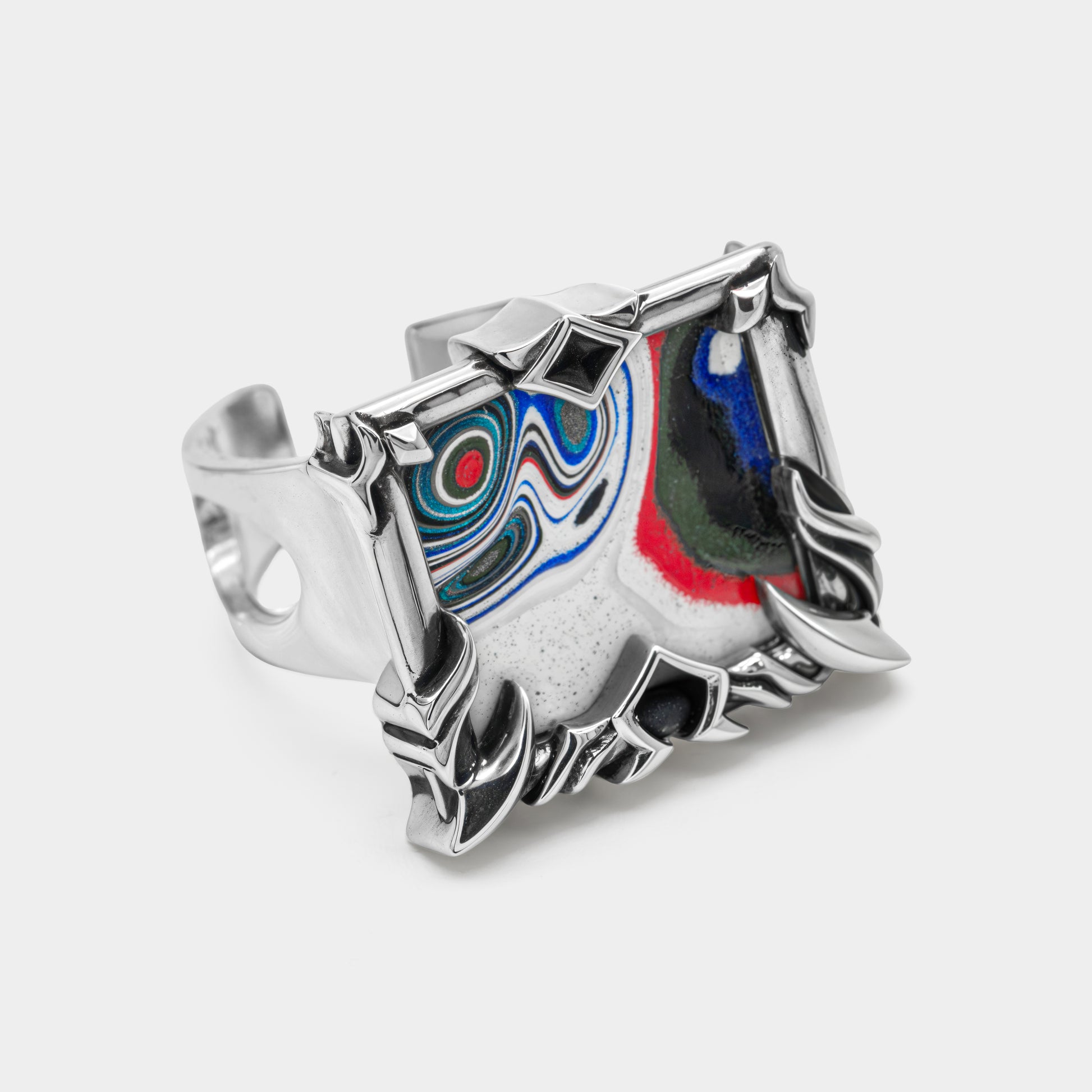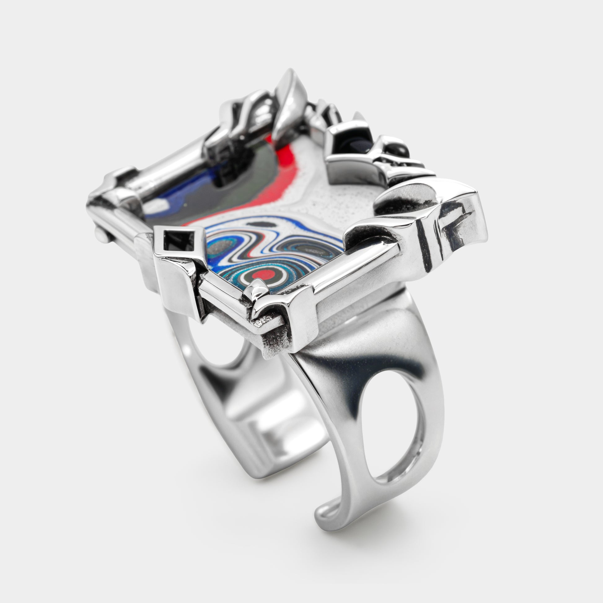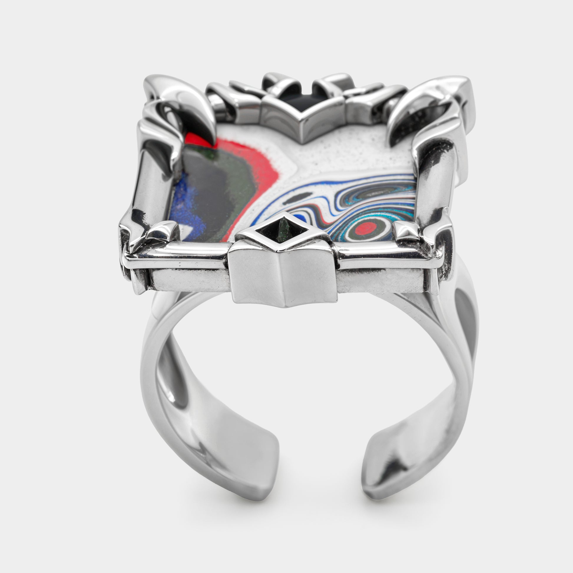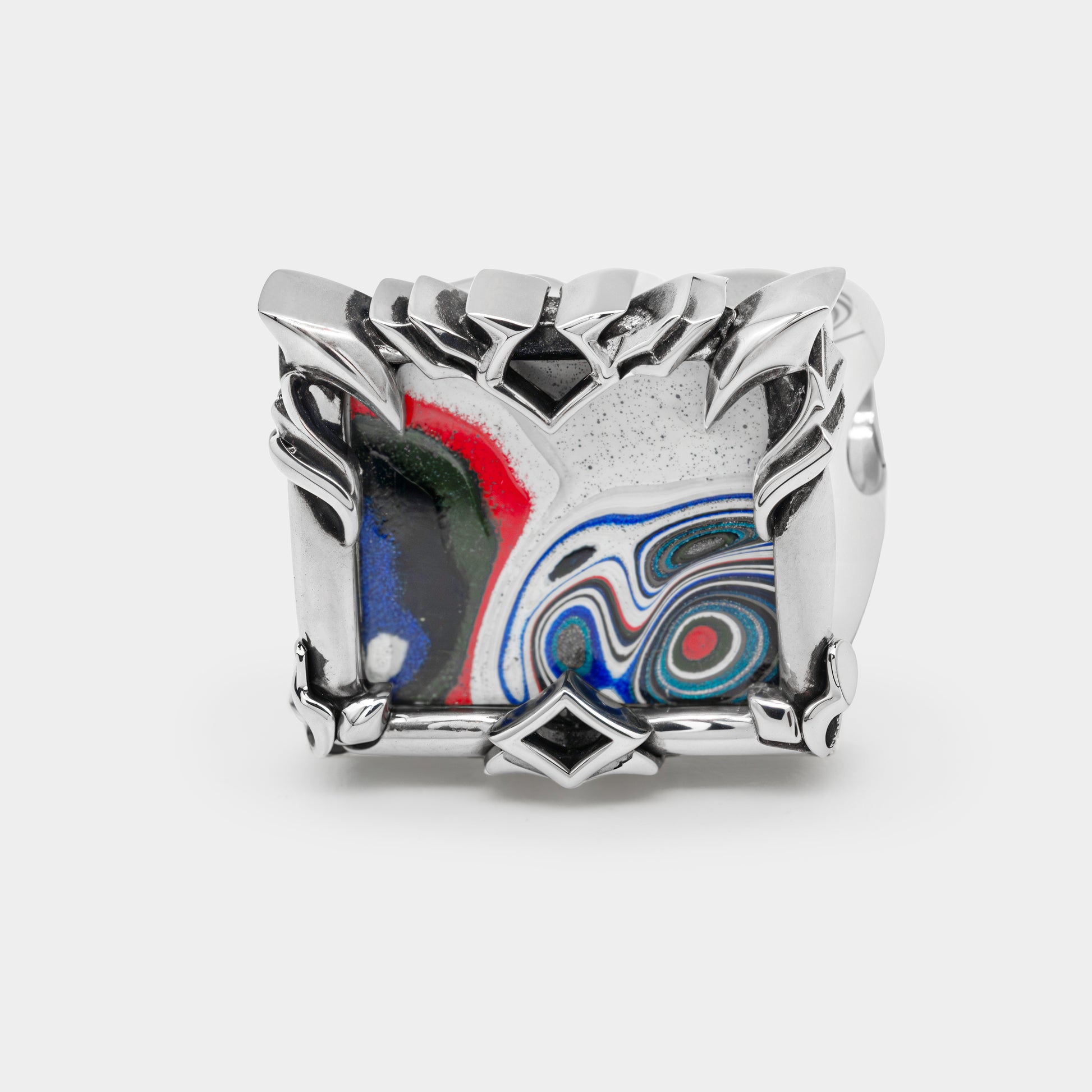 Square shape ring with insert made of dried automotive paint from Detroit, 1990s. Piece unique design