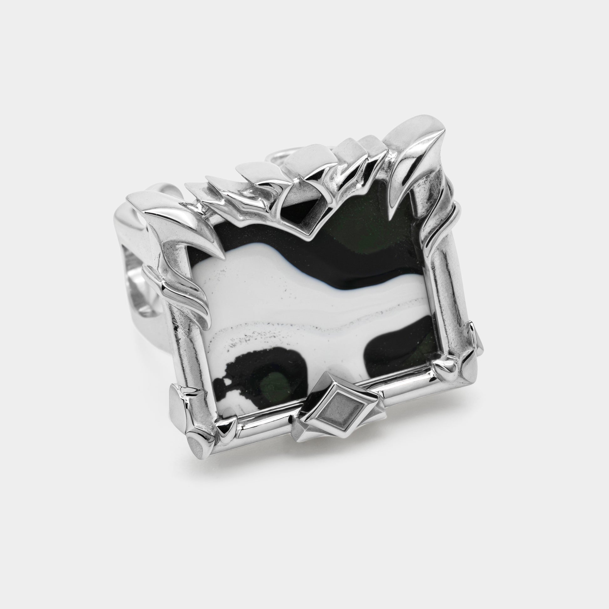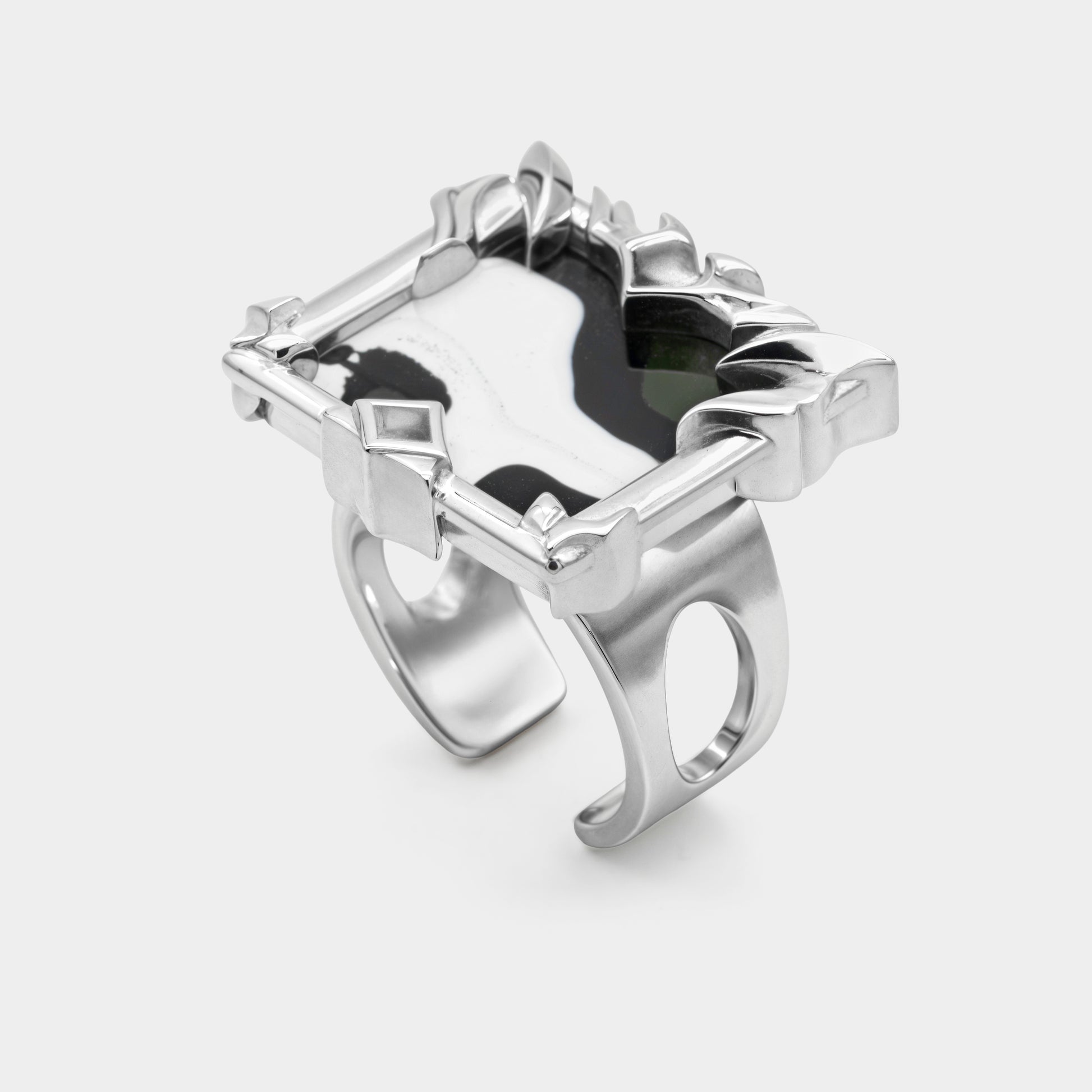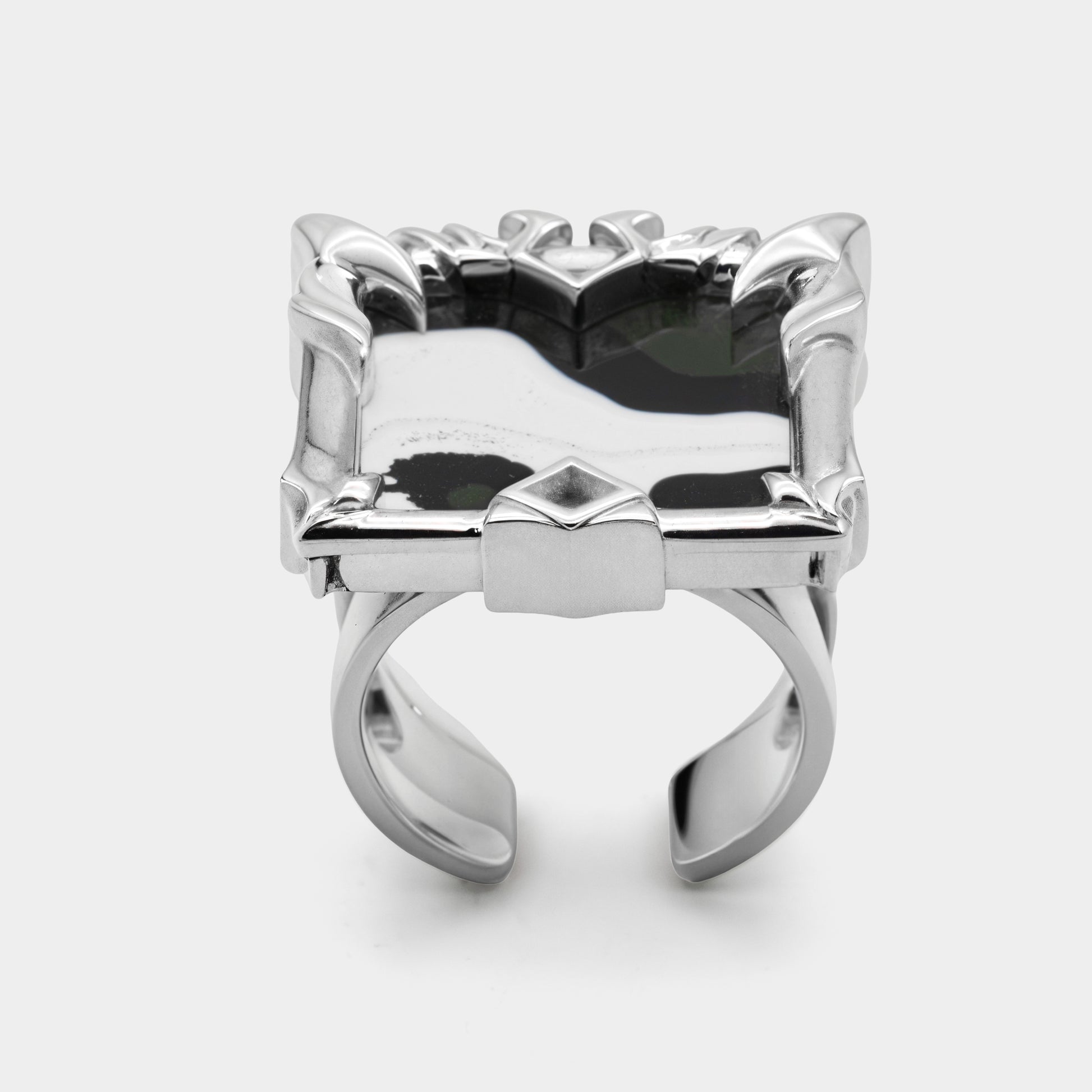 Square shape ring with insert made of dried automotive paint from Detroit, 1990s. Piece unique design