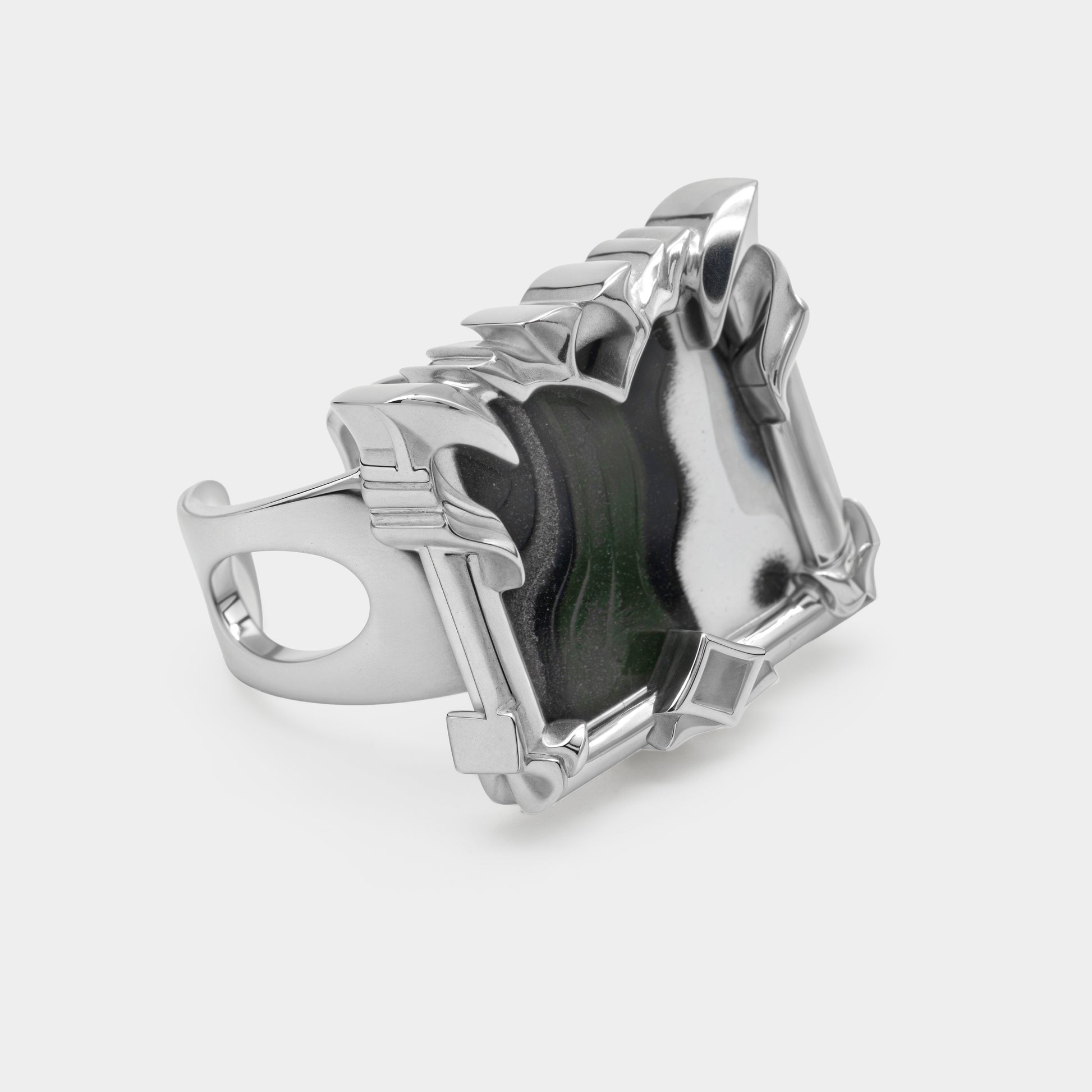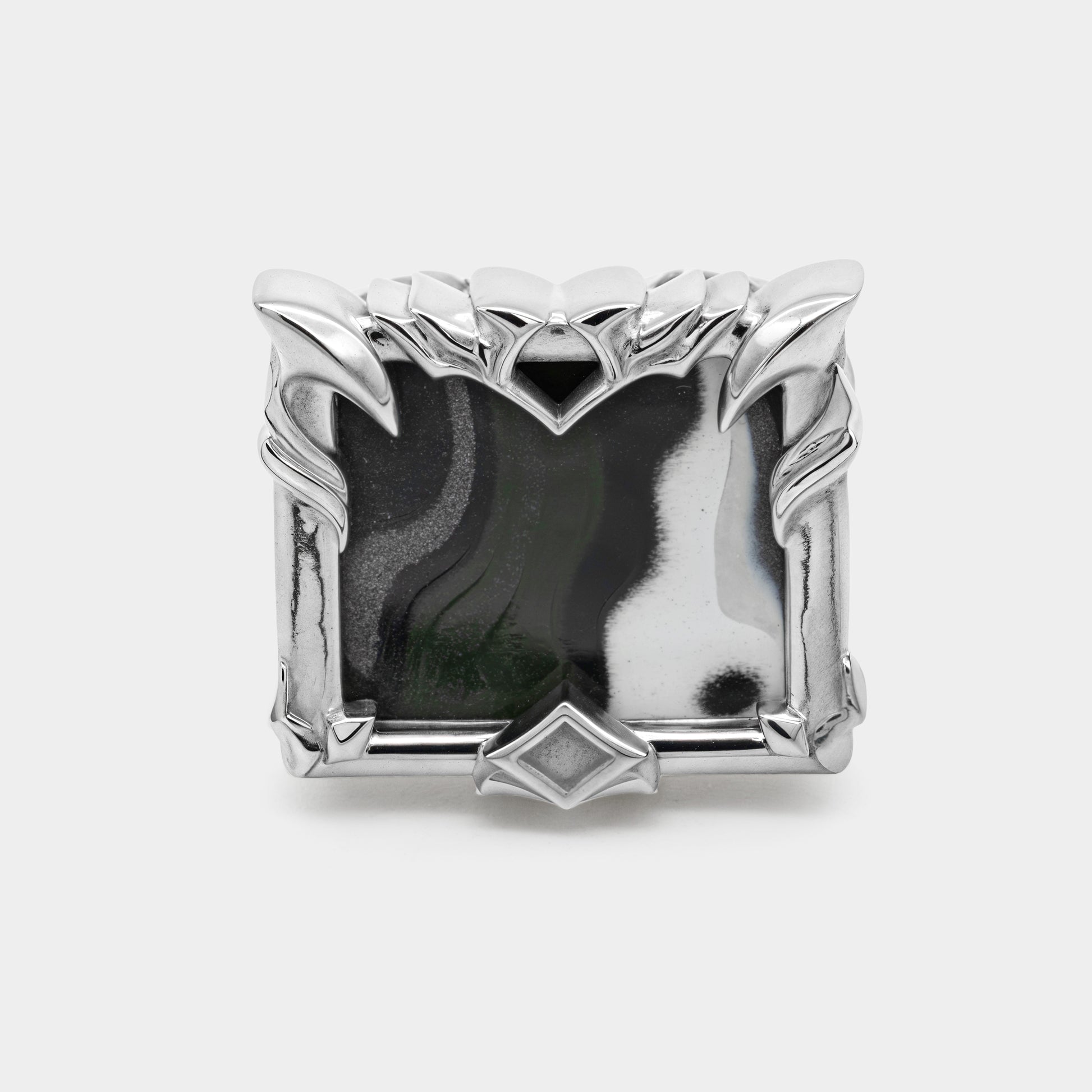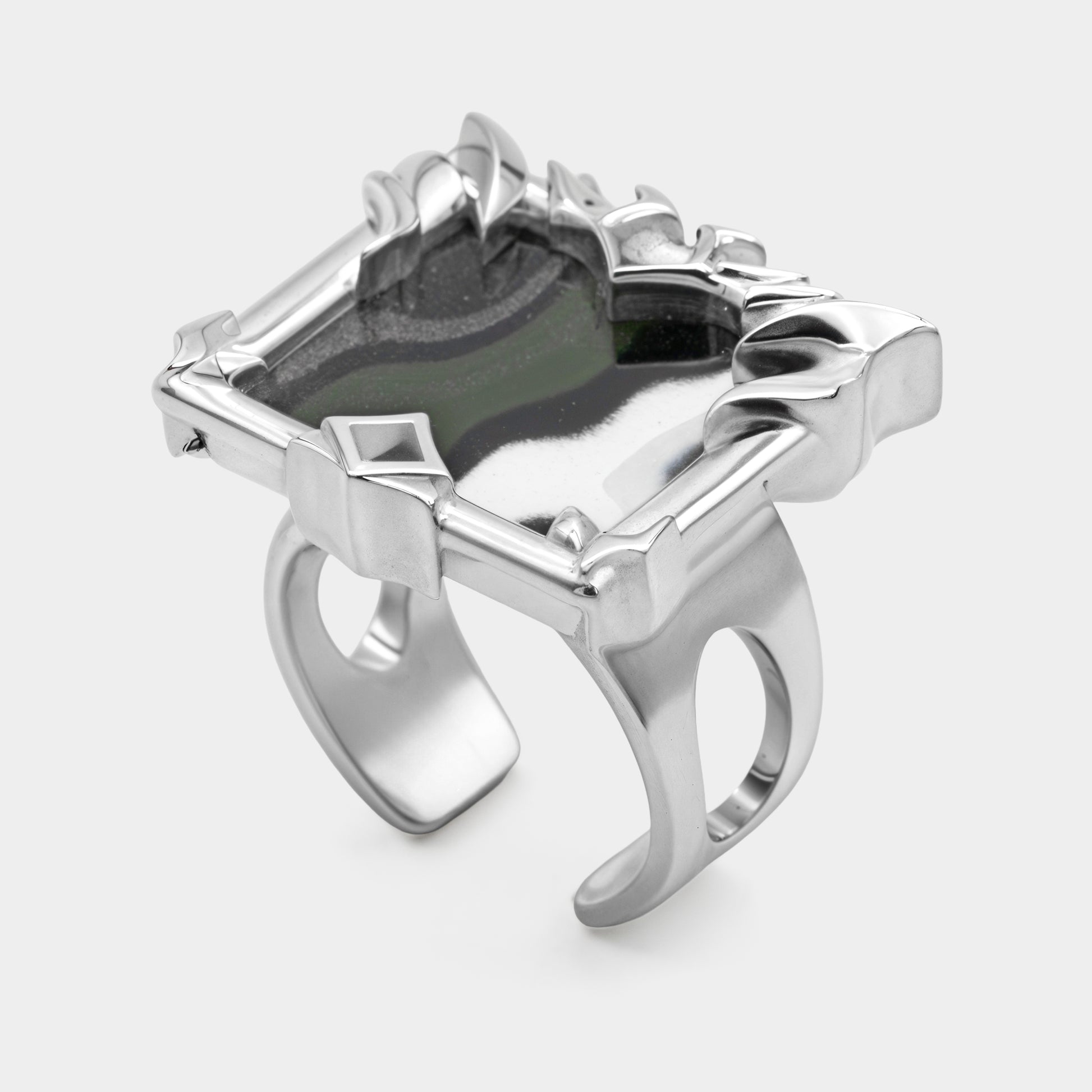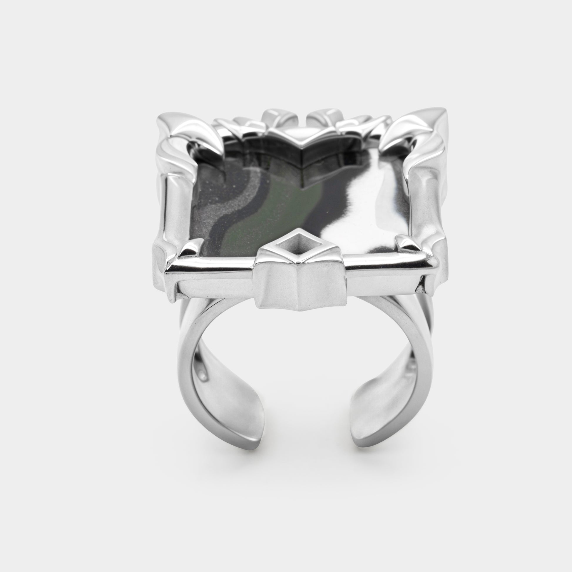 Square shape ring with insert made of dried automotive paint from Detroit, 1990s. Piece unique design